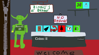 Bingus is a roguelite turn based RPG! Kill big evil monsters to get coins, use these coins to purchase loot! How many floors can you climb? Probably not even one, LOSER!!! -Bingus